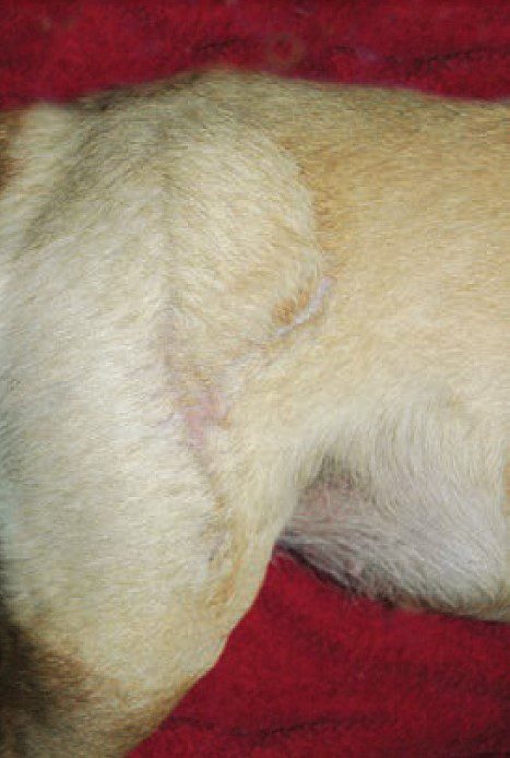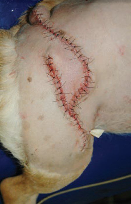 Twee maanden na de operatie is de wond mooi genezen en blijkt uit het weefselonderzoek dat de tumor in zijn geheel is verwijderd. Hiermee is de hond genezen. Voor het behandelen van wonden gebruiken we regelmatig lasertherapie, dit is een zeer geschikte en pijnloze manier voor wondbehandeling.